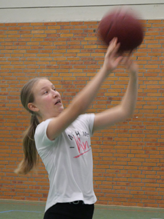 - Der Ball kann nicht ohne Sprung im Korb versenkt werden.