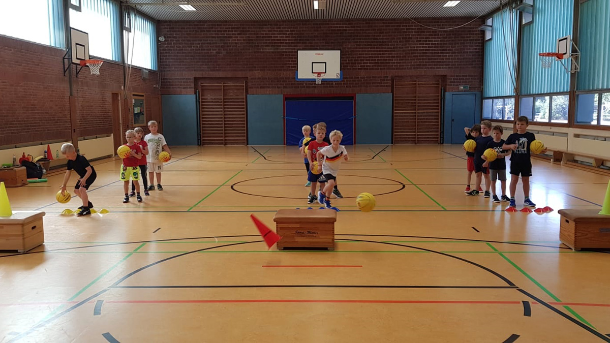 Und so hat die Gruppe ständig neuen Nachwuchs und inzwischen sogar zwei Altersklassen, die Kita-Kinder, die erstmal ganz viel Orientierungssinn, Fair-Play-Regeln, laufen, fangen und Ballspielen üben und die Kinder, die gerade in die Schule gekommen sind und neben dem Genannten schon erste Übungen mit den Basketbällen machen und auf Korbjagd gehen.