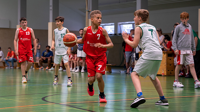 Im ersten Spiel traf man auf die BG Bonn. Da alle Spieler dieses Teams bis auf einen in der nächsten Saison bereits in der U14 antreten werden, nahm Coach Jonathan in seiner Ansprache viel Druck heraus. Er stimmte seine Jungs, die zum Teil noch U10 und U11-Spieler sind, auf die eigenen Stärken ein und so starteten die BBCR Jungs befreit wie die Feuerwehr und erspielten sich im Laufe der ersten Halbzeit ein Polster von 14 Punkten (25:11). Das hohe Spieltempo, eine kleine Rotation und eine gut eingestellte Bonner BG brachte die Mini-Twisters in Abschnitt zwei allerdings gänzlich aus dem Rhythmus, sodass das Spiel mit 27:33 an die Jungs aus Nordrein-Westfalen ging.