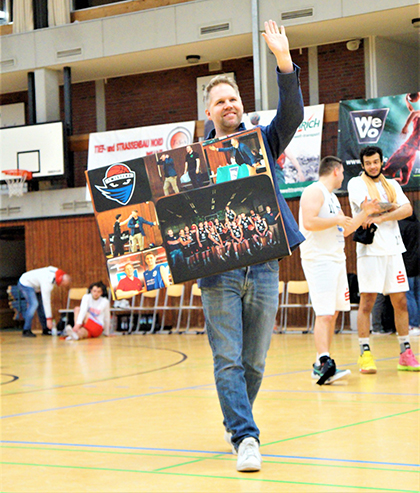 Nach dem 91:60 des BBC Rendsburg über die MTV/BG Herzöge Wolfenbüttel wird es emotional in der Herderhalle. Auch zwei Spieler werden den Verein aller Wahrscheinlichkeit nach verlassen. Am Ende bekam Bjarne Homfeldt dann doch noch feuchte Augen. Lange hatte der scheidende Coach der BBC Rendsburg Twisters versucht, ein paar Tränen zu unterdrücken, während die Vereinsvorsitzende Antje Mevius-König eine fast zehnminütige Rede hielt, in der sie noch einmal die zehn Jahre von Homfeldt als Twisters-Trainer Revue passieren ließ. Dazu wurden immer wieder Fotos von Homfeldt aus dieser Dekade auf der großen Anzeigetafel in der Herderhalle gezeigt.