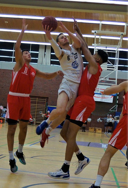 Bis auf 62:58 konnten die Gäste verkürzen und machten das Spiel so vier Minuten vor Schluss wieder spannend. Dann war es erneut der stark aufspielende Malte Jacobsen, der in zwei aufeinderfolgenden Angriffen jeweils drei Punkte erzielen konnte und so für die Vorentscheidung des Spiels sorgte. „Malte hat heute ein überragendes Spiel gemacht und war sowohl im Angriff als auch in der Verteidigung extrem wichtig für uns“, schwärmte Homfeldt von der Leistung seines Flügelspielers.