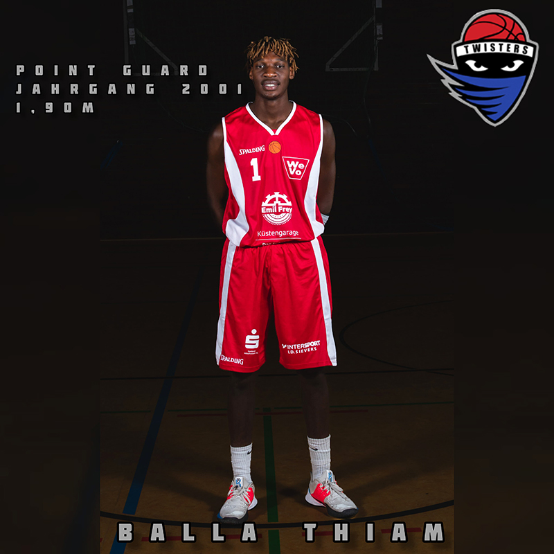 Auch in der kommenden Saison wird Balla Thiam als Nummer 1 für die Twisters über das Feld wirbeln. Der sympatische Guard ist einer der besten On-Ball Verteidiger der Liga und extrem antrittsschnell, so dass er immer wieder geradezu mühelos an seinen Gegner vorbei zu kommen scheint oder diesen im Gegenzug nicht an sich vorbeilässt.