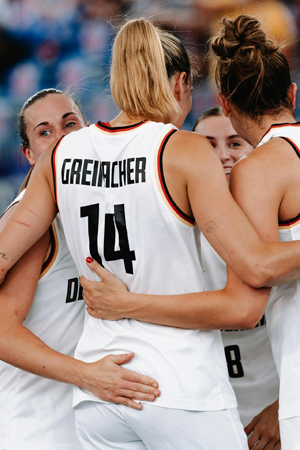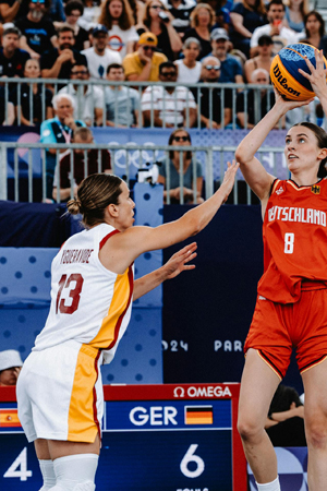 Von Beginn an war klar, dass die Leistungsdichte in diesem Turnier besonders eng beieinander liegen würde und jedes der acht teilnehmenden Teams die anderen schlagen oder aber auch gegen diese verlieren konnte. Mit einem schweren Auftaktspiel gegen den Gewinner der Olympischen Spiele 2021 und aktuellen Weltmeister hatten die deutschen 3x3 Damen mit den USA auch einen schweren Gegner. Und der Start verlief alles andere als einfach, denn das deutsche Team geriet frühzeitig mit 0:5 in Rückstand, ehe Mevius den ersten Korb für Basketball-Deutschland bei Olympischen Spielen verwandelte. Historisch dieser Korb und auch die anschließenden Leistungen im Turnier, bei dem die deutsche Mannschaft immer wieder durch Teamleistung und Zusammenhalt überzeugte und in der Vorrunde sechs der insgesamt sieben Spiele gegen weitere hochkarätige Gegner wie China, Kanada, Spanien und Frankreich für sich entscheiden konnte und sich damit direkt für das Halbfinale qualifizierte. Und Mevius war von Beginn an ein wichtiger Faktor dieses Erfolges, denn mit ihrer kreativen offensiven Spielweise und Verbissenheit in der Verteidigung avancierte die 20-jährige Rendsburgerin schnell zum Liebling der Zuschauer und Kommentatoren und war fester Teil des Geschehens.